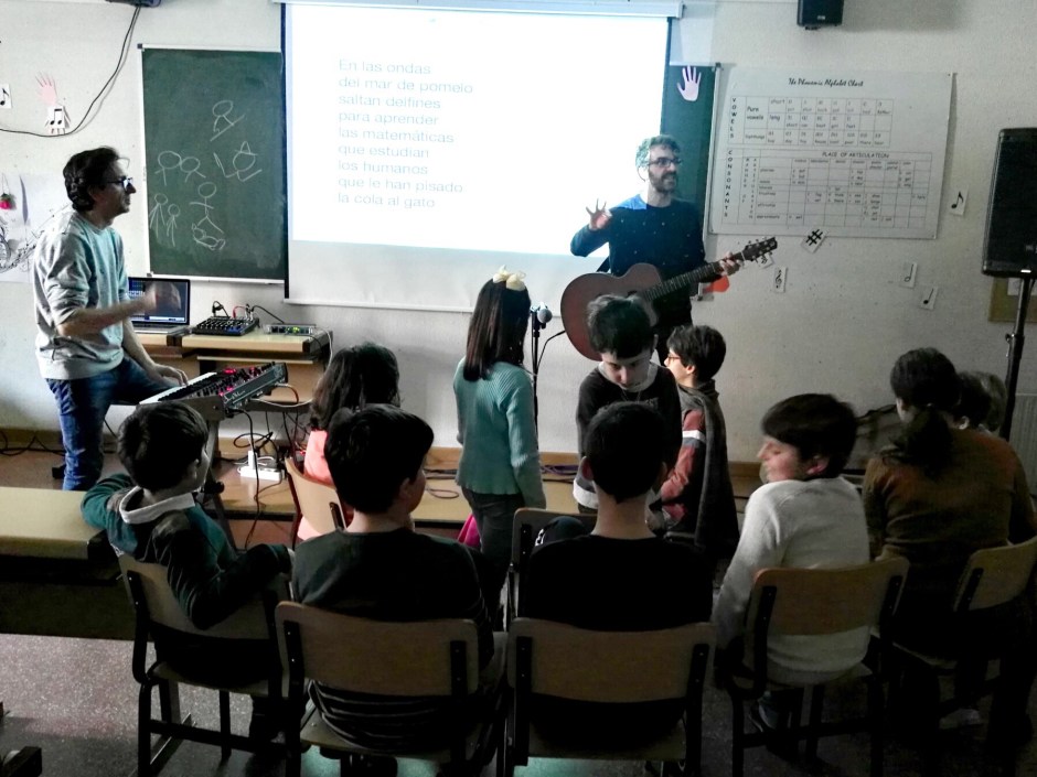 Los hermanos Lizcano, integrantes de Entertainiment explicarón a los participantes de PequeTECNOarTEA y TECNOarTEAjunior como se crean las canciones y el uso de los instrumentos.