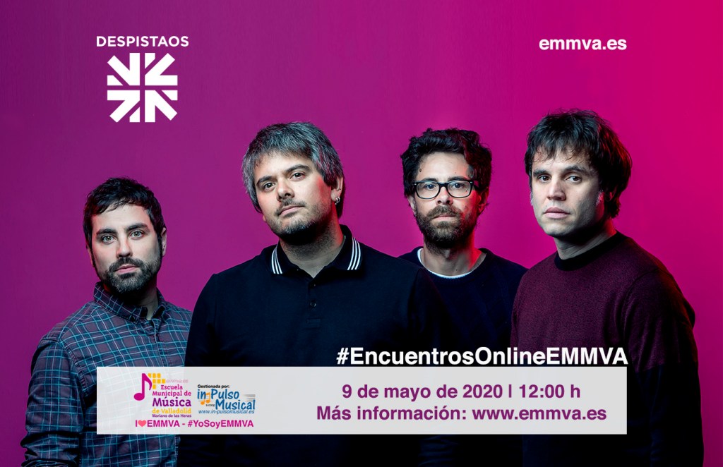 La Escuela Municipal de Música “Mariano de las Heras” del Ayuntamiento de Valladolid tenía previsto recibir el sábado 9 de mayo a las 12:00 h la visita del grupo “Despistaos”. Aunque, debido a las actuales circunstancias, el encuentro no se podrá realizar de manera presencial, se mantendrá y se va a realizar el mismo día y a la misma hora previstas inicialmente, pero de forma online permitiendo a alumnos y profesores participar en un animado coloquio con el grupo, durante le cual podrán intercambiar experiencias y conocer de cerca su evolución a través de la plataforma meet.