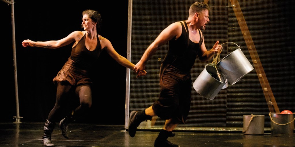 Las acrobacias toman forma sobre la escalera, objeto escénico que establece los objetivos, los desafíos, las dudas, las certezas y el riesgo.