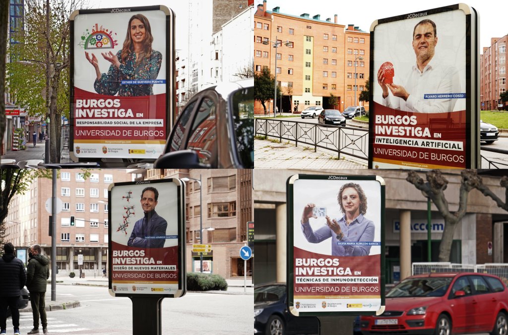 La actividad investigadora de la Universidad de Burgos crece cada año y su importancia merece un reconocimiento. En el marco de la tercera edición de la iniciativa “Burgos Investiga”, fotografías de otros 14 investigadores e investigadoras de la UBU llenarán las marquesinas de la ciudad para mostrar a la ciudadanía un aspecto fundamental de la actividad universitaria: la generación de conocimiento en sus distintas áreas.