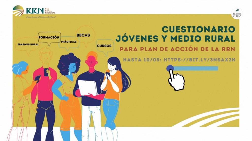 Para ello, se ha creado una encuesta dirigida a los jóvenes del medio rural que pretende alimentar el trabajo en materia de jóvenes y relevo generacional que la RRN ha previsto impulsar en los próximos meses. El objetivo que persigue es conocer cómo los jóvenes valoran la vida del medio rural, qué necesidades identifican como prioritarias y de qué modo consideran que la RRN podría contribuir a hacerles frente.