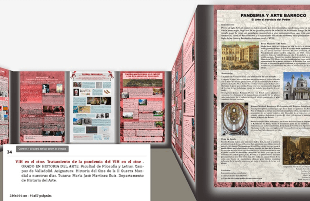 En esta ocasión, la muestra aborda desde diversas perspectivas y disciplinas académicas la actual Pandemia del COVID-19, así como otras que se han ido sucediendo a lo largo de la historia, como la del SIDA, gripe española, viruela, cólera, peste, etc. Todo a través de 55 pósteres realizados por profesores y estudiantes de los Grados en Medicina, Historia del Arte, Geografía y Ordenación del Territorio, Historia, Educación Primaria y Estudios Conjuntos de Infantil y Primaria; Antropología Social y Cultural; Español: Lengua y Literatura; Filosofía, e Historia y Ciencias de la Música de la Universidad de Valladolid.