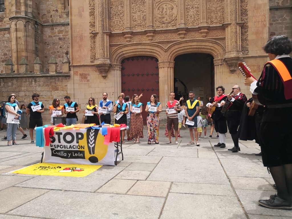A través de esta representación, Jóvenes de Castilla y León ha pretendido reflejar que la despoblación y el éxodo juvenil son dos de los principales problemas de Salamanca y del resto de la comunidad autónoma.