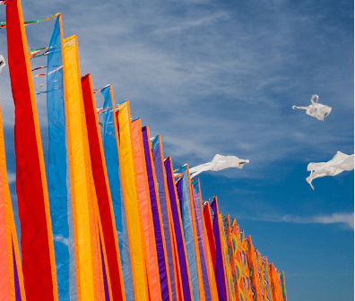 El extremo inferior no necesita dobladillo y la forma queda a criterio del artista (recta, sesgada, en picos, etc.). Los pendones deben barnizarse por ambos lados para que pueda soportar tanto el viento como la lluvia.