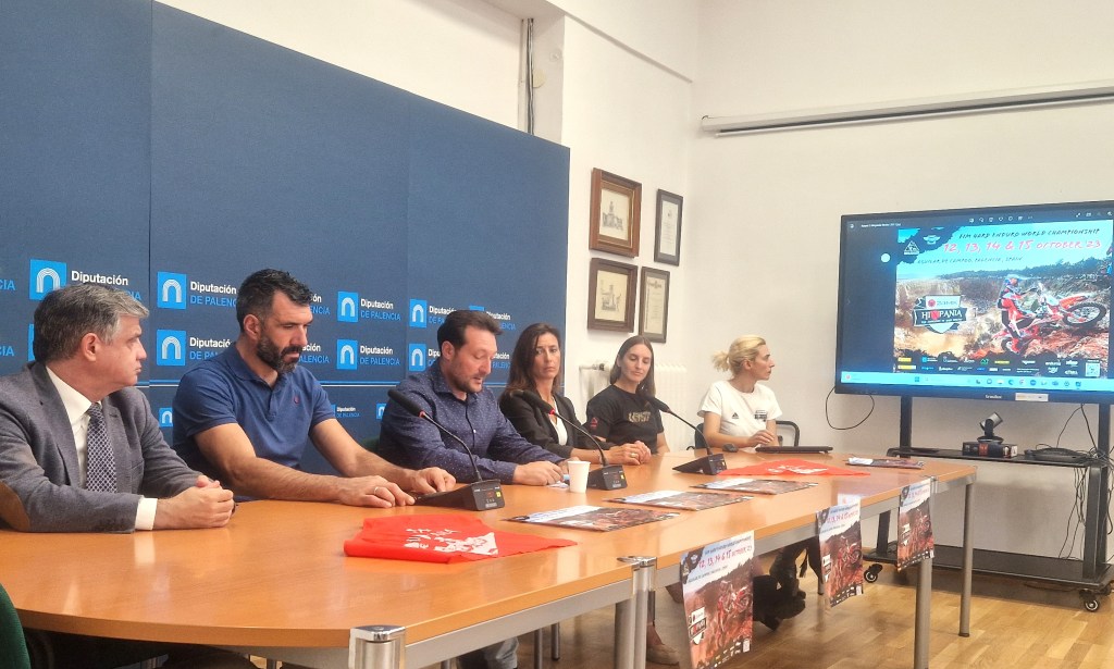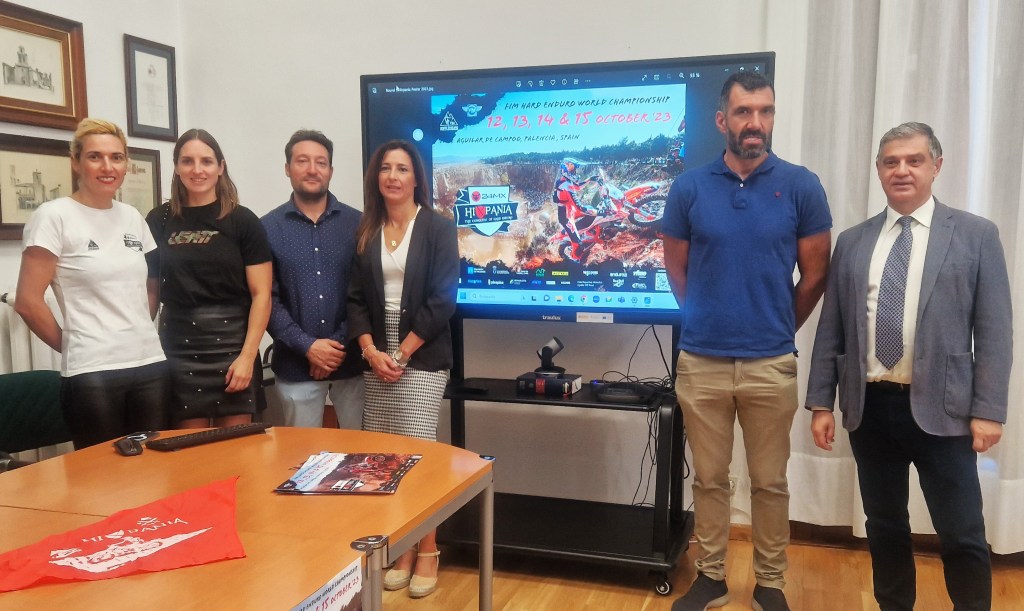 El diputado delegado del servicio de Deportes Eduardo Tejido y el coordinador de Deportes, Enrique Hermoso acompañados de la concejala de deportes de Aguilar, Soraya Isasi y de los responsables de la entidad organizadora, el director de la Hispania Hard Enduro 24MX, Enrique Caballero, y la encargada de la difusión, Leticia Caballero, así como la subcampeona del mundo de trial, y piloto en el Hard Enduro Dakar, Sandra Gómez, han sido los encargados de dar a conocer la prueba 24MX Hixpania Hard Enduro 2023, que por séptimo año regresa a Aguilar de Campoo entre los días 12 y 15 de octubre, después de haber batido la temporada pasada todos los récords, tanto de participación, con más de 300 pilotos, como de visitantes, con más de 10.000 personas entre el público.
