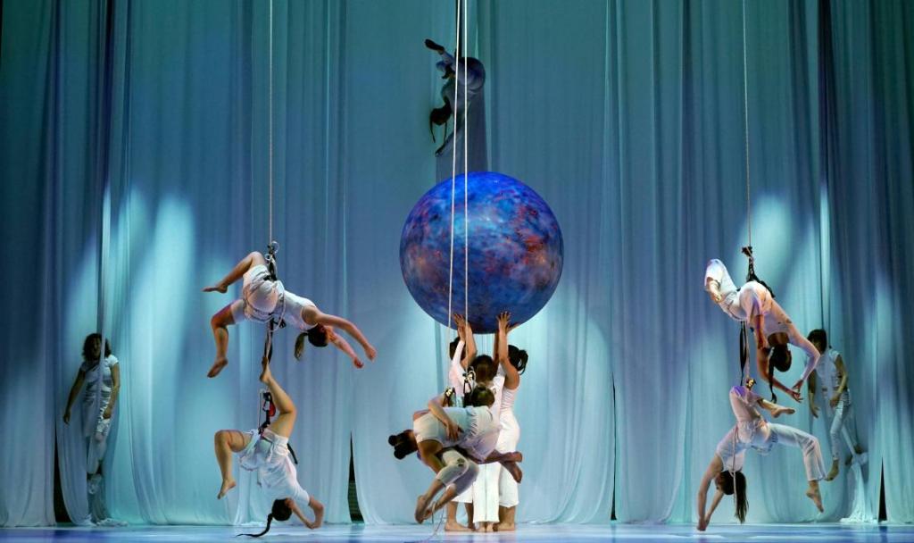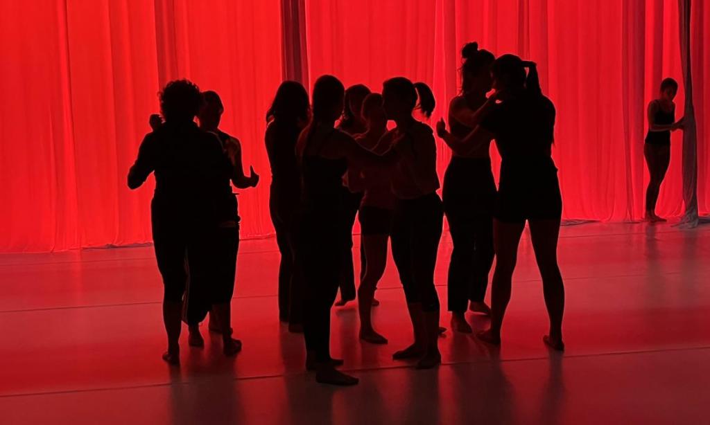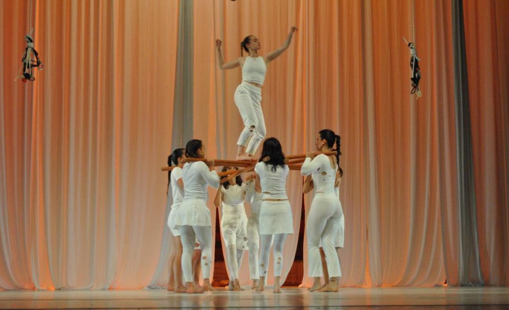 El desarrollo escénico propone una exploración del cuerpo como vehículo expresivo, a través de desplazamientos colectivos, dinámicas de grupo y trabajo aéreo que enfatizan la dimensión física del lenguaje artístico.